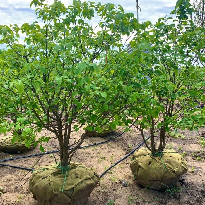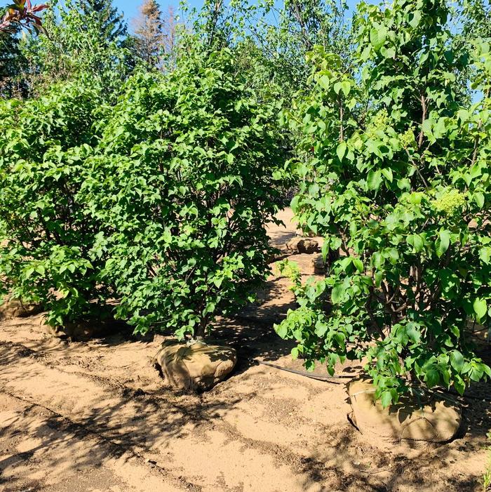 Large shrub or small tree with oval to rounded crown, arching with time. Excellent specimen or street tree. Hardy, disease resistant. Fragrant creamy white flowers.